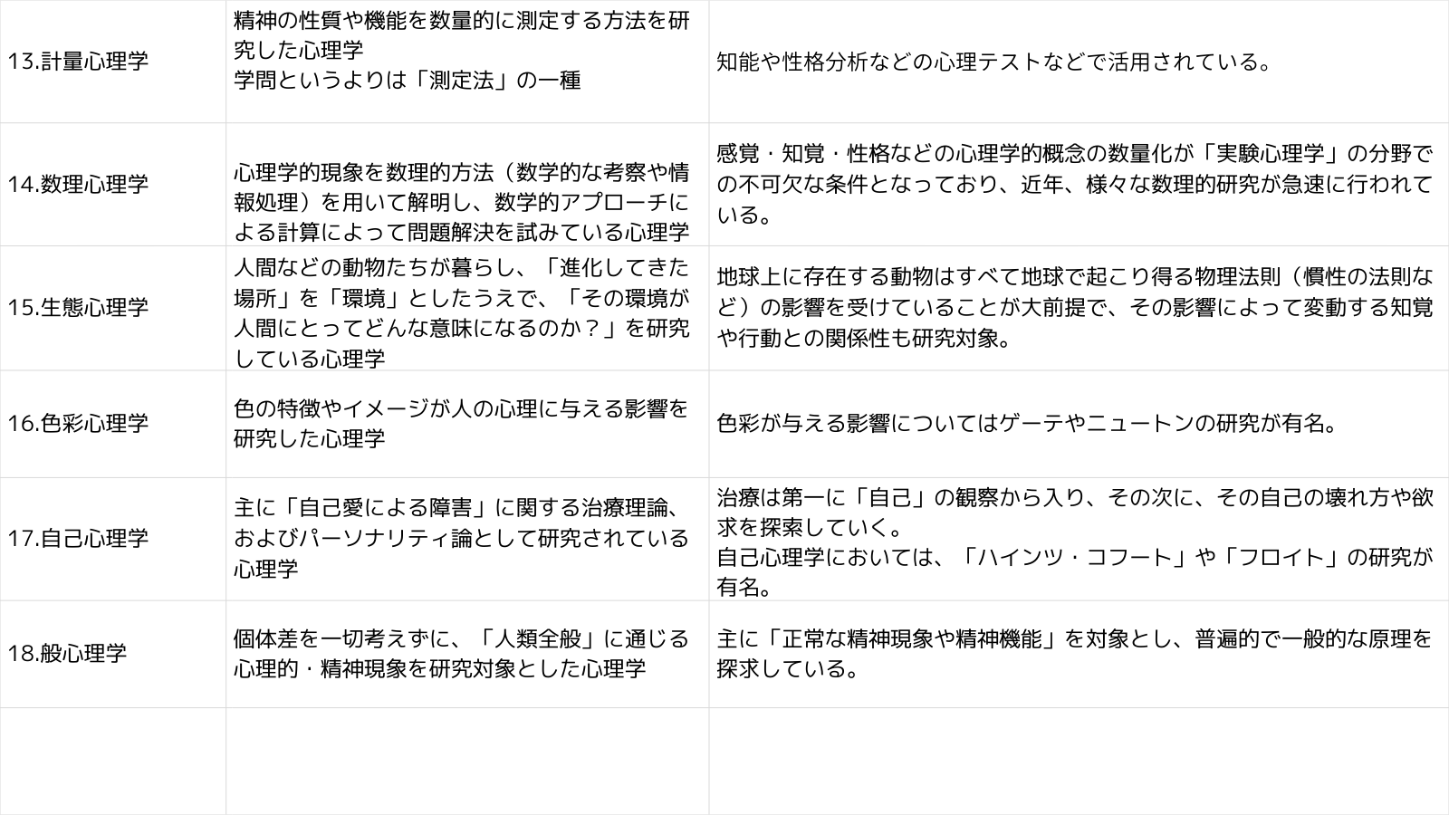 一般心理学:「人それぞれ」という要素を排除した、「正常な精神構造をした人類全般」に共通する普遍的で広義的な心の反応を研究。